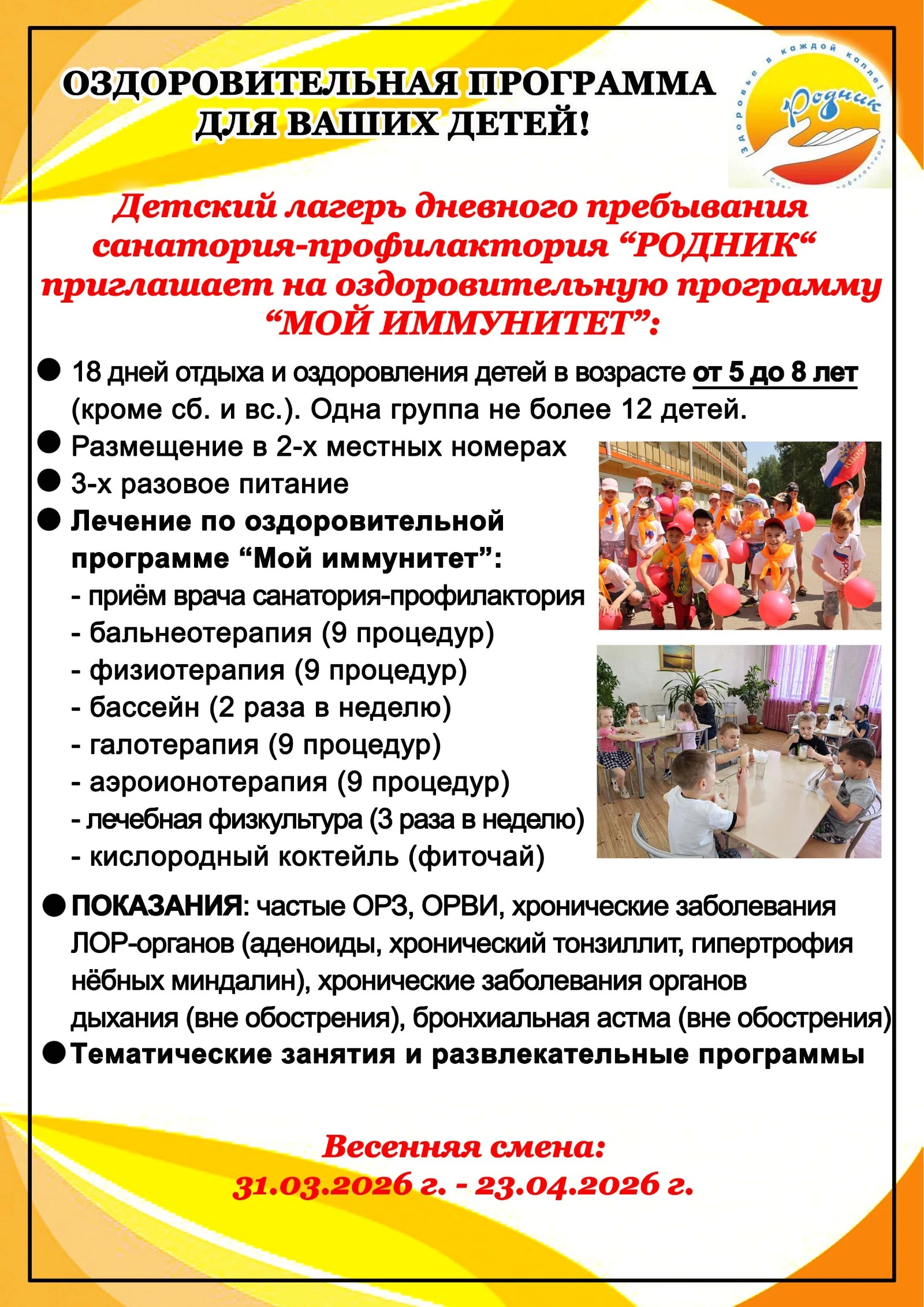 Детский лагерь дневного пребывания с/п "Родник" приглашает на оздоровительную программу "МОЙ ИММУНИТЕТ"