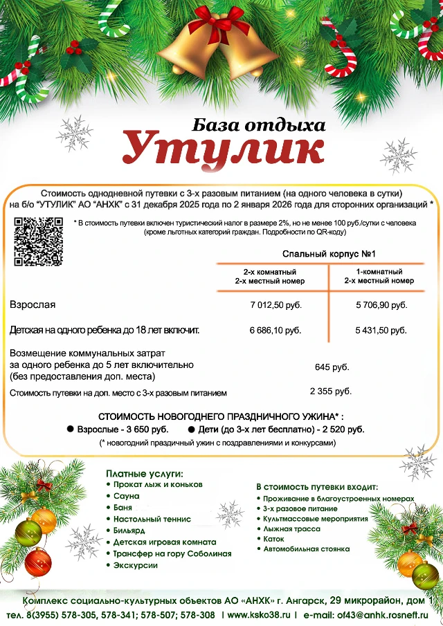 Стоимость путевок с 31.12.2025 по 02.01.2026