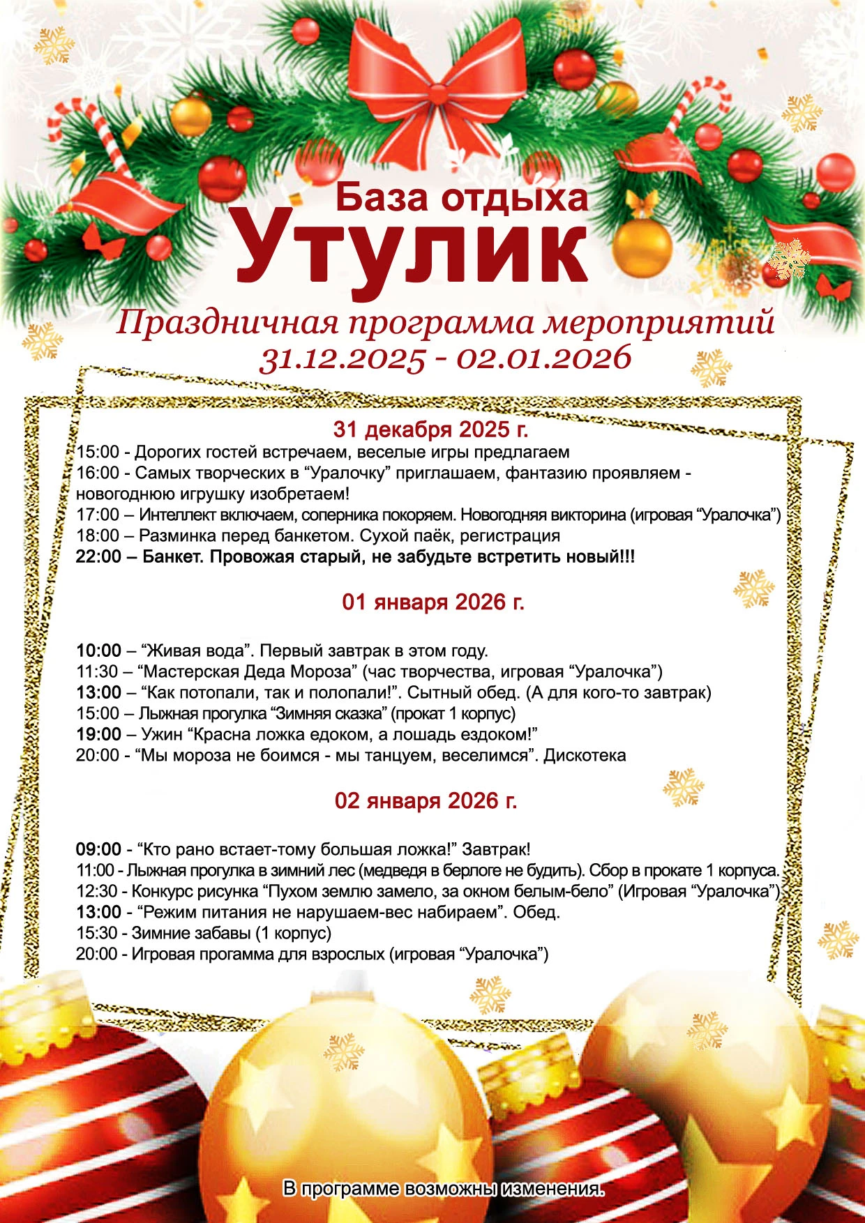 Празднование Нового года с 31.12.2025 по 02.01.2026
