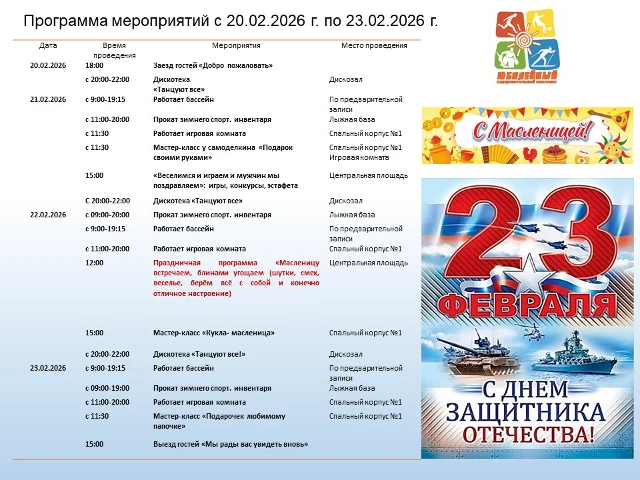 Программа мероприятий с 20.02.2026 по 23.02.2026