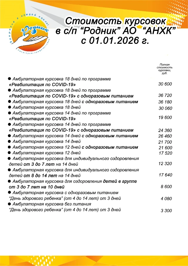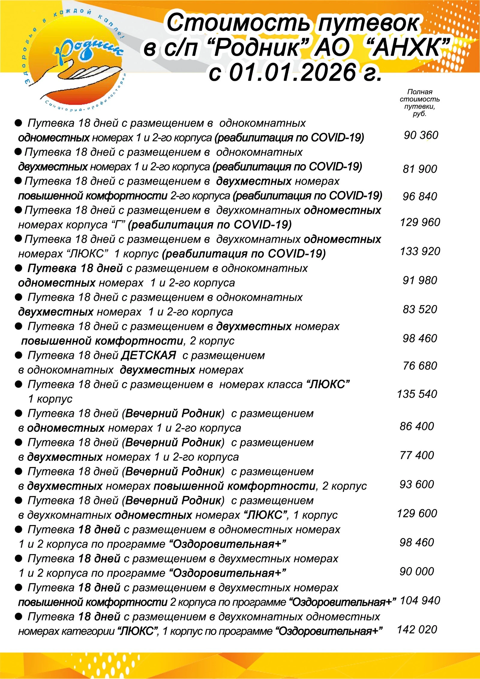 Стоимость путевок с 31.12.2025 по 02.01.2026