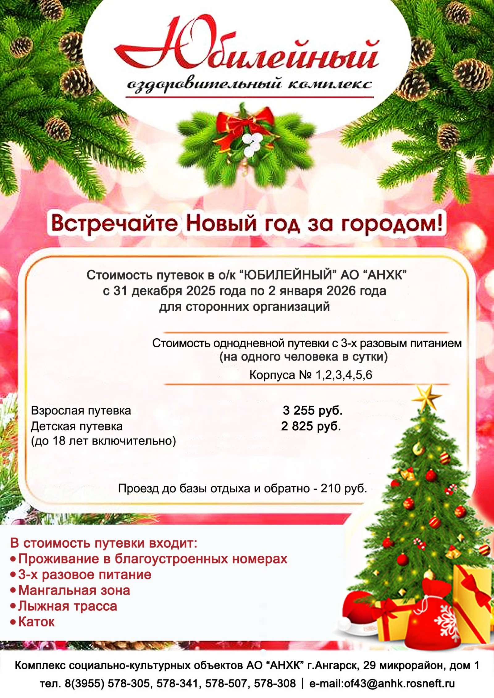 Стоимость путевок с 31.12.2025 по 02.01.2026