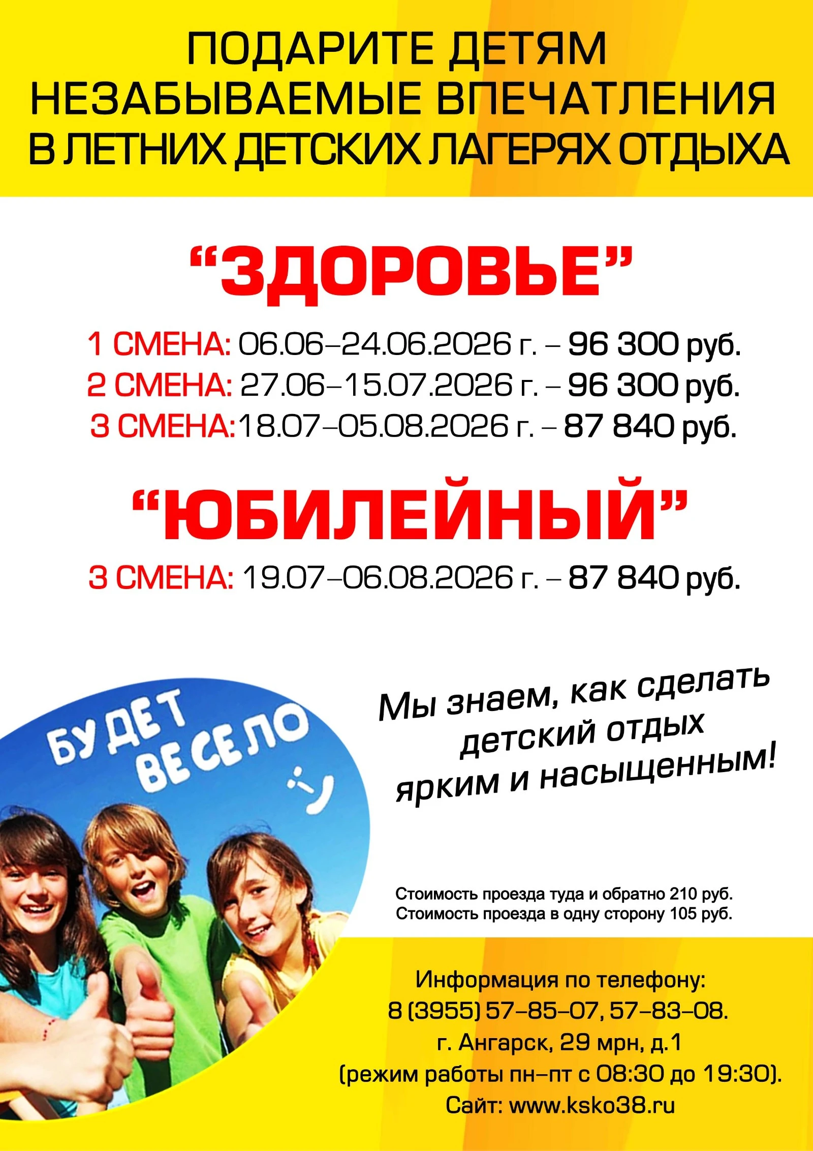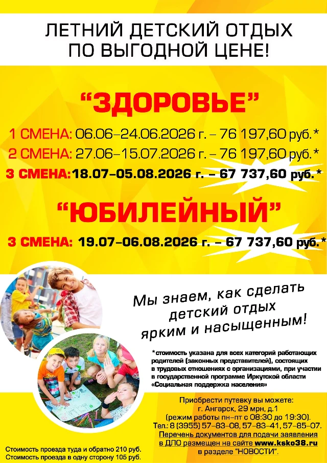 Стоимость путевок для организованных групп школьников и студентов